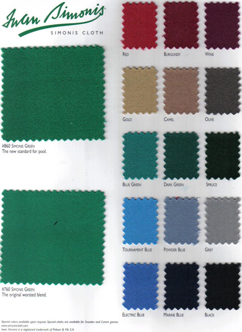 Through the years I found if you use quality cloth and rubber, you will get a quality job. That is why I use Championship Billiard Fabric - or for the more serious player - Iwan Simonis cloth.